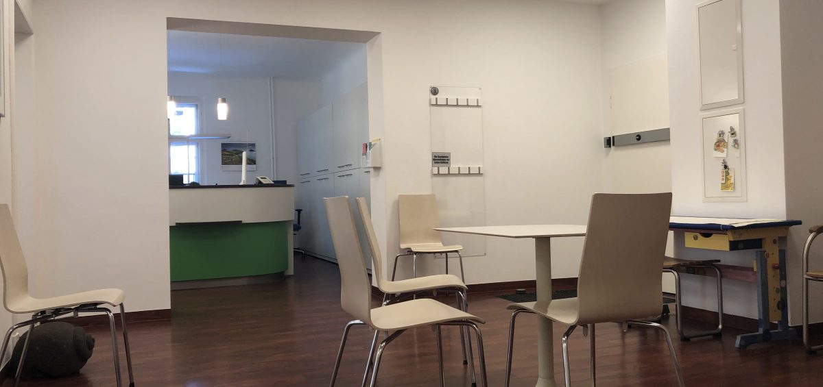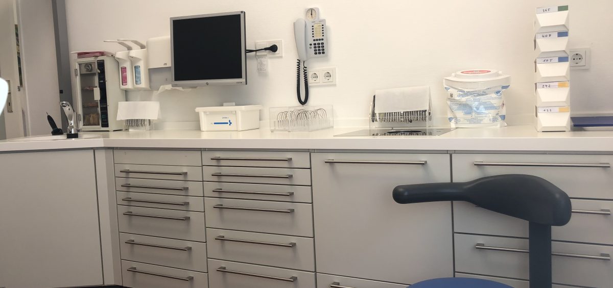 - Zimmer: 2 Behandlungszimmer, 1 Raum Rezeption/Büro, 1 Aufbereitungs-/Röntgenraum, 1 Wartezimmer, 1 Labor, 1 Gipsraum, 1 Mundhygiene/Patiententoilette, 1 Sozialraum, 1 Personaltoilette