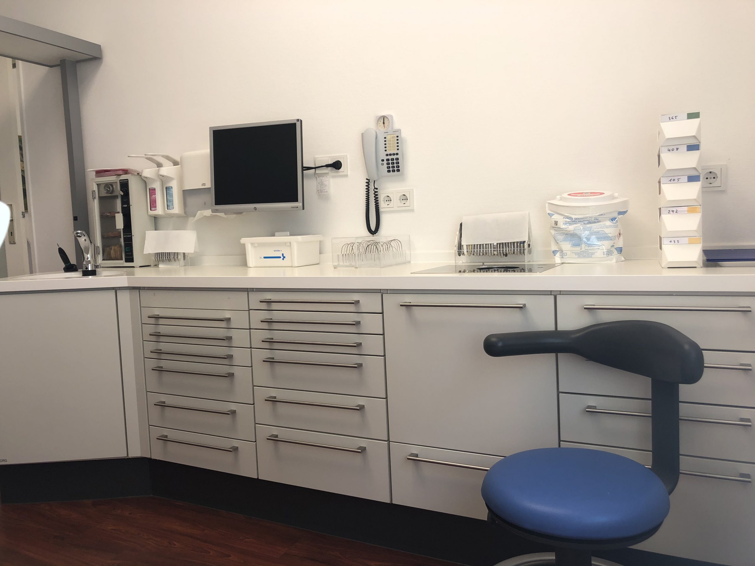 - Mitarbeiter: 5 (2 ZMF, 1 Zahntechniker, 1 Aushilfe, 1 Reinigungskraft)