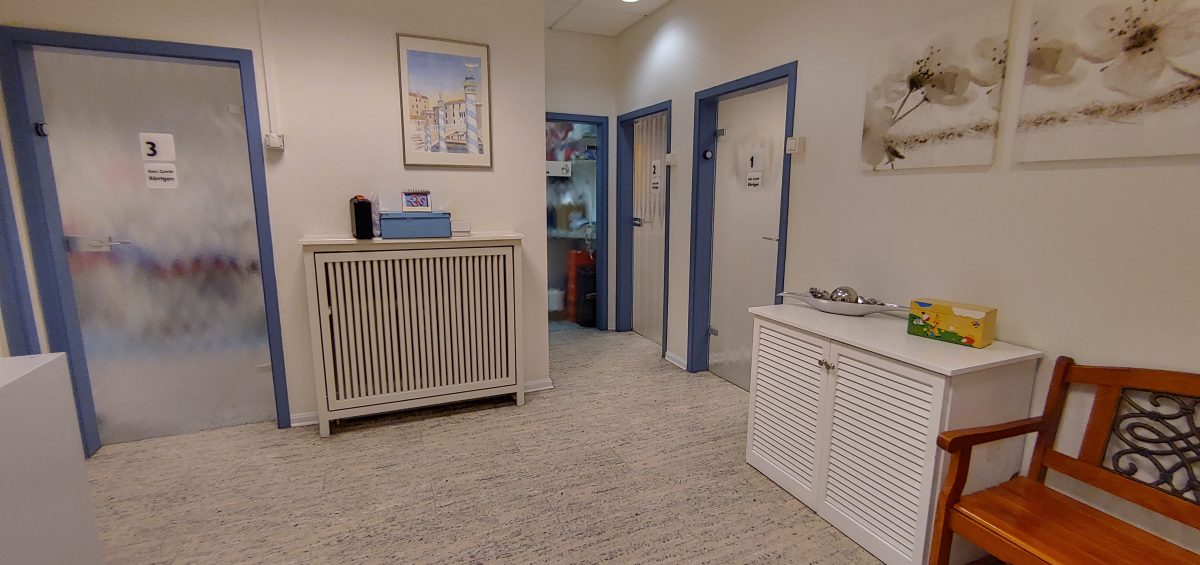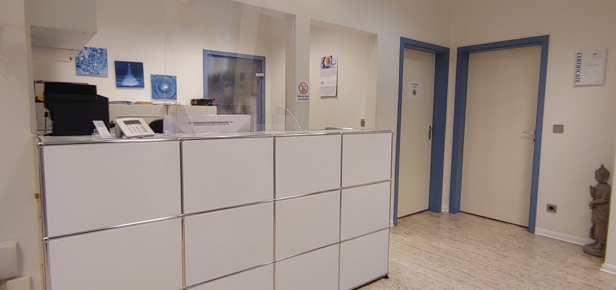 - Zimmer: 3 Behandlungszimmer, Backoffice, Wartezimmer, Labor, Steri, Röntgen, Küche/Sozialraum