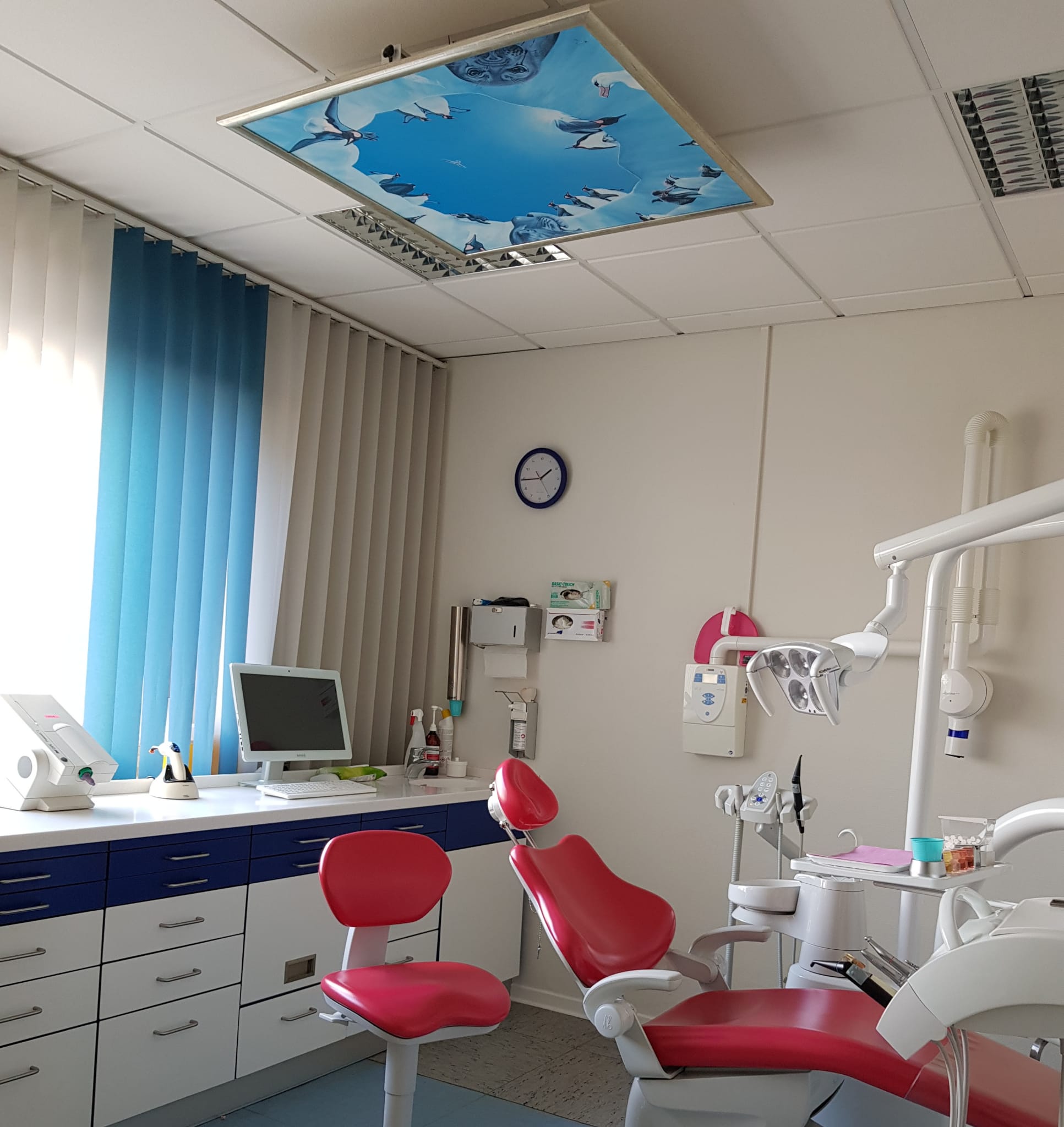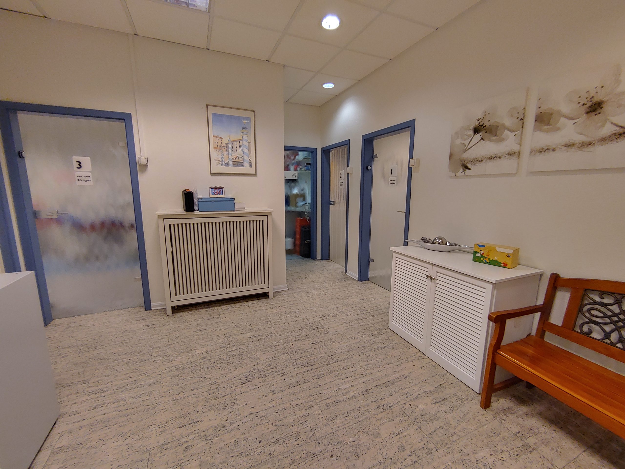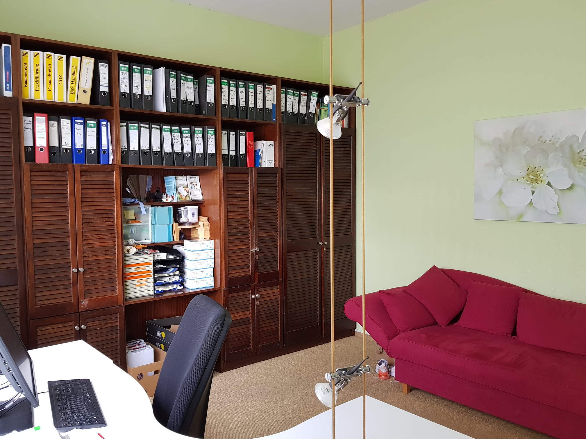 - Zimmer: 3 Behandlungszimmer, Backoffice, Wartezimmer, Labor, Steri, Röntgen, Küche/Sozialraum